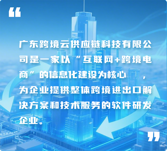 广东跨境云供应链科技有限公司创立于2018年,是以“互联网+跨境电商”技术开发为核心,专注服务于跨境电商进口领域的高新技术企业。